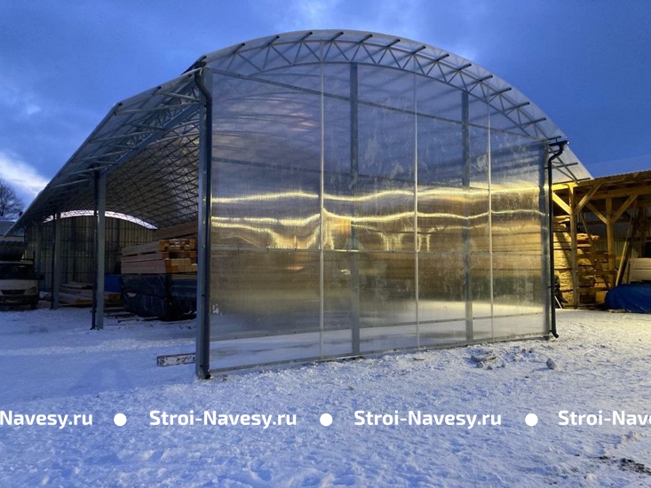 Полуарочный промышленный автонавес с поликарбонатом на несколько авто